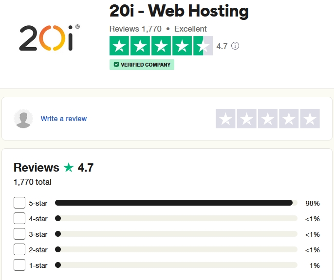To help you when in need, 20i hosting comes with 24x7x365 customer support. The hosting provider has nearly 1770 reviews with an average score of 4.7/5 on Trustpilot. Also, you get detailed documentation to help you manage the hosting account and perform day-to-day tasks seamlessly.