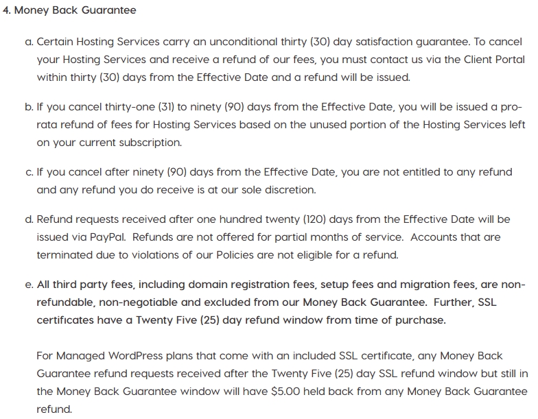 That is, the hosting company will give you a full refund if you find it unsuitable, and you can cancel your plan within the first 30 days. After 30 days, you’re also entitled to a prorated refund for any unused services.