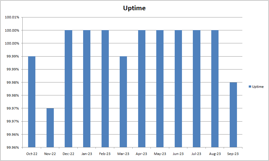 | UPTIME: | 99.98% (Oct. 2022 to Sep. 2023) |