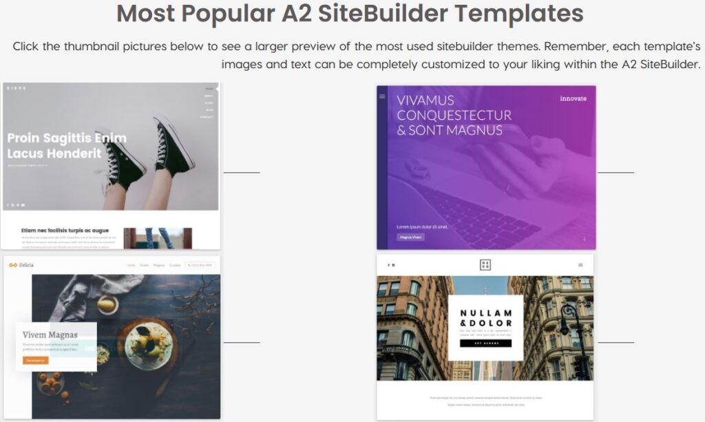 In addition, A2 Hosting’s website builder (A2 SiteBuilder) lets you quickly create a website using its professional templates.